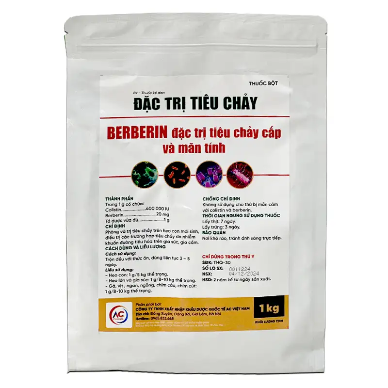 Không sử dụng cho thú bị mẫn cảm với colistin và berberin
